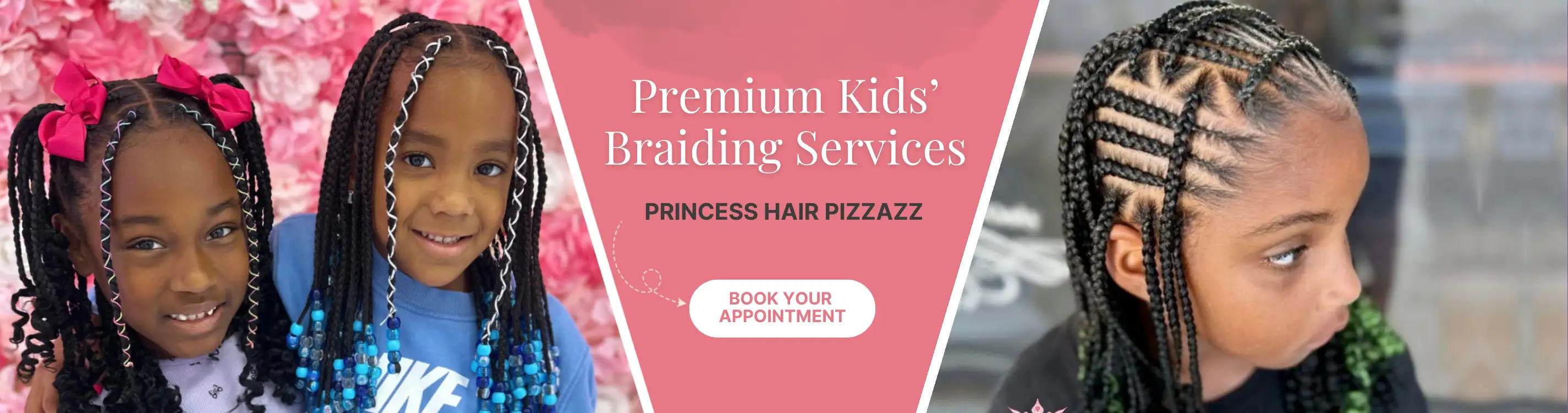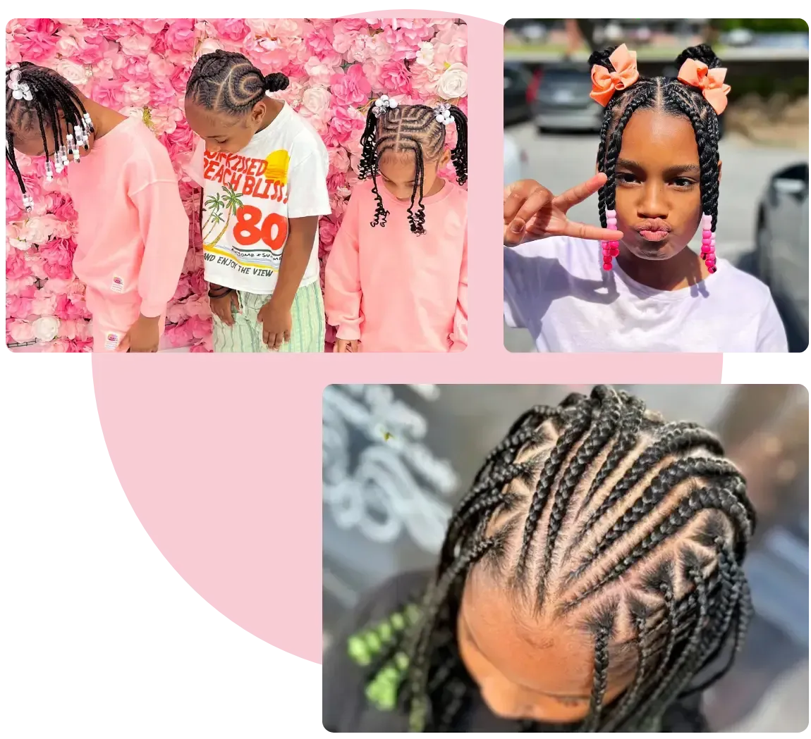 That’s why we created a welcoming space just for girls—filled with patience, love, and care. Our stylists gently braid beautiful, lasting styles that keep hair healthy and save moms precious time.